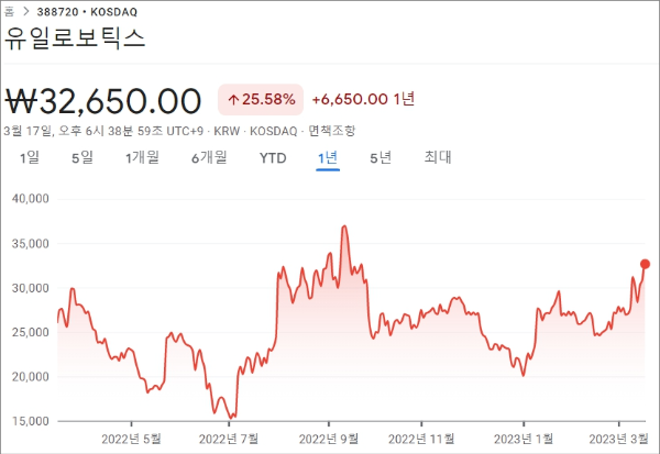 2023년 3월 18일 현재 추가가 2,745원으로 저평가된 종목 중의 하나입니다. 아직은 많이 알려져 있지 않지만 전기차와 더불이 로봇이 일상화 되면서 주가가 점차 상승할 것으로 보입니다.
